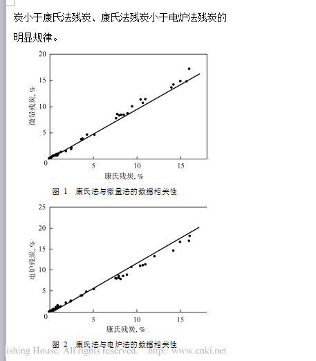 前述的實(shí)驗(yàn)結(jié)果說明 ,用三種不同方法測定不同類型的油樣時(shí) ,所得殘?zhí)繑?shù)據(jù)間的相關(guān)性有好有