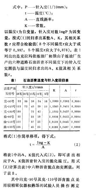 利 用石 油瀝青的針入度推測脆點(diǎn)是一種
