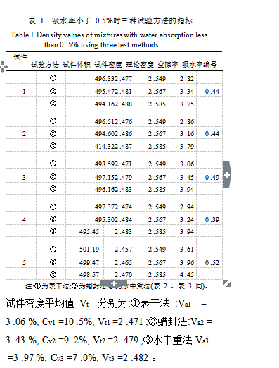[ 1] 所提到的吸水率。因此 , 表干法的適用條件在實際工程中較難準確界定 , 實際操作的準確度也難于把握。